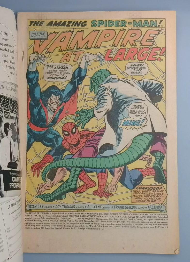 Keywords: Amazing Spider-Man Morbius Living Vampire Marvel Comics comic book 1971 Spider-Man Lizard Gil Kane superhero
