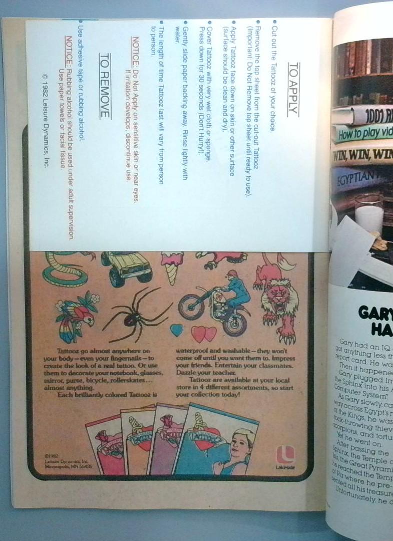 A newsstand edition copy, this vintage Marvel title also features an included free skin tattoo promotional item, typical of Marvel's marketing efforts during the early 1980s. The comic represents a key period in Spider-Man's publication history and features advertisements for contemporary video games and entertainment products of the era.