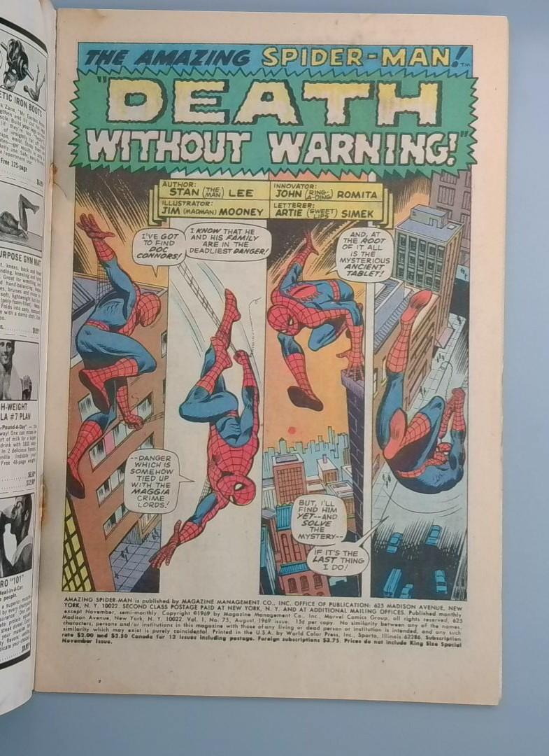 Keywords: Amazing Spider-Man Marvel Comics 1969 Death Without Warning comic book Stan Lee superhero action inner turmoil vintage comics