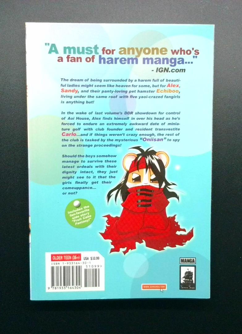 Following the events of the previous volume's DDR showdown for control of Aoi House, protagonist Alex faces new challenges as he's forced into an awkward miniature golf date with Carlo, the club founder and resident transvestite. Meanwhile, the mysterious "Oniisan" assigns the group a spy mission to monitor the proceedings. As Alex and the boys navigate these comedic ordeals alongside their five yaoi-obsessed fangirl housemates, they must find a way to maintain their dignity while hoping the girls finally get their comeuppance—or do they?