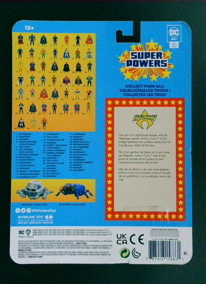 Keywords: Aquaman DC Comics McFarlane Toys action figure superhero collectible orange and green costume articulated figure character bio card Atlantis