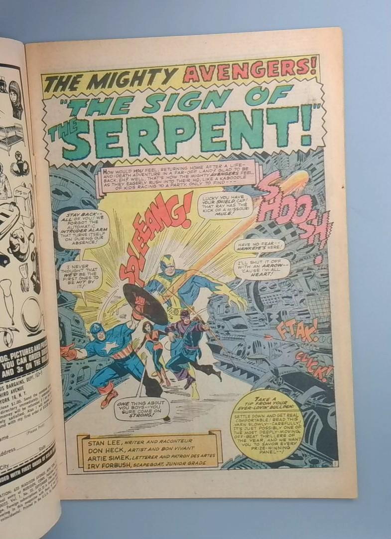 Keywords: Avengers Marvel Comics comic book 1966 Bronze Age Hawkeye serpent villains superhero Stan Lee action-packed