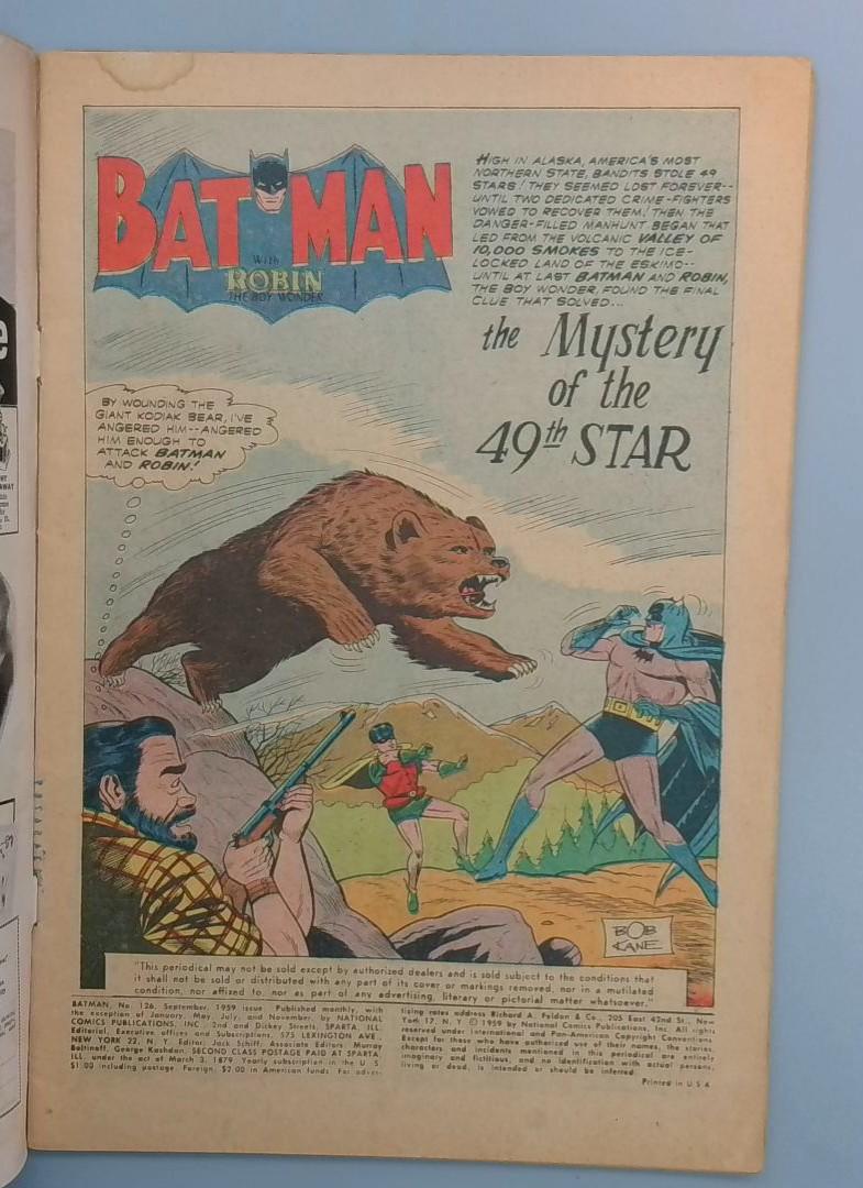 Batman #126 features Batwoman teaming up with Batman and Robin to battle the Menace of the Firefly, a villain with a unique glowing weapon. The cover depicts an exciting action scene with the characters positioned dramatically on a building, highlighting the dynamic storytelling of the era. This issue showcases the classic Silver Age Batman team-up style, with colorful characters and an imaginative villain confrontation.