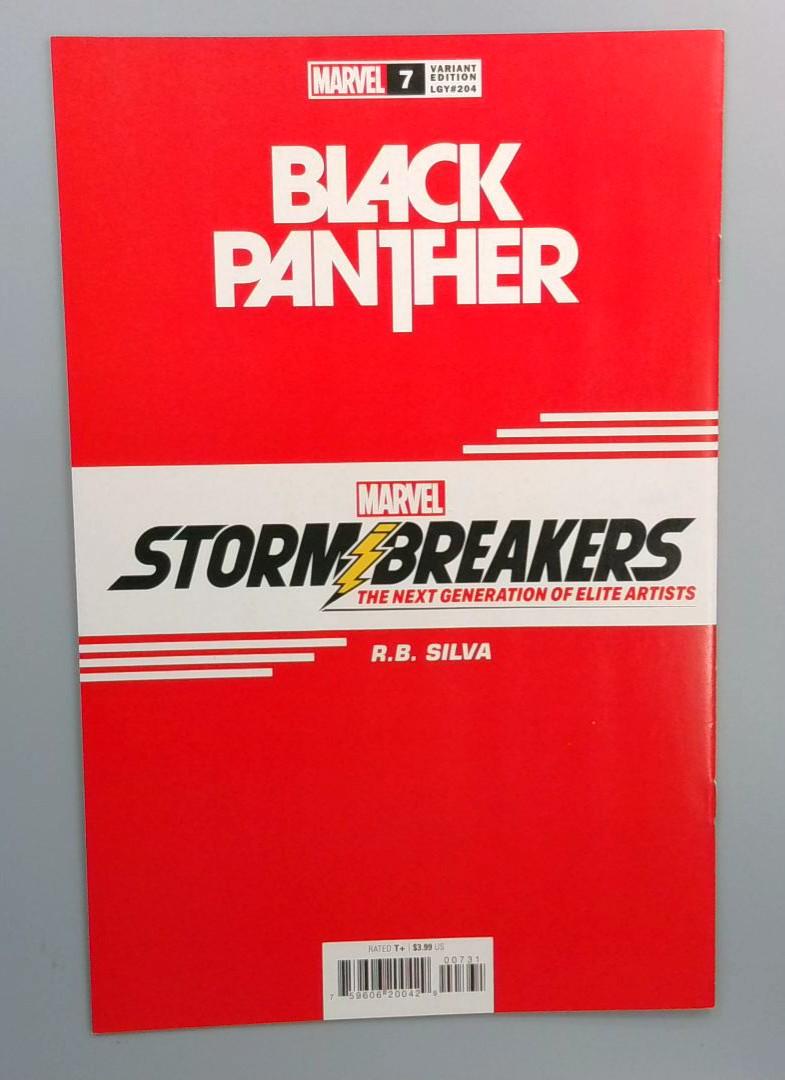 Black Panther #7 continues the modern Black Panther storyline with T'Challa and Wakanda at the center, spotlighting political intrigue and threats to the vibranium-rich nation. This is the Stormbreakers variant cover by R.B. Silva, part of Marvel’s “The Next Generation of Elite Artists” series, featuring a vibrant Wakanda cityscape and the “Welcome to the Vibranium Capital of the World” art. Issue: Black Panther #7, Variant Edition (LGY #204).