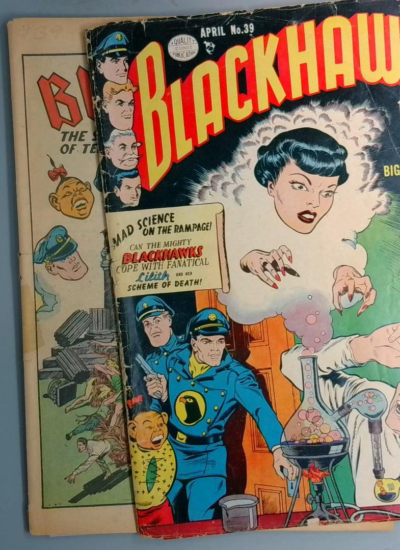 Keywords: Blackhawk Quality Comics Golden Age comics comic book April issue adventure stories mad science action-packed military uniforms vintage advertisements