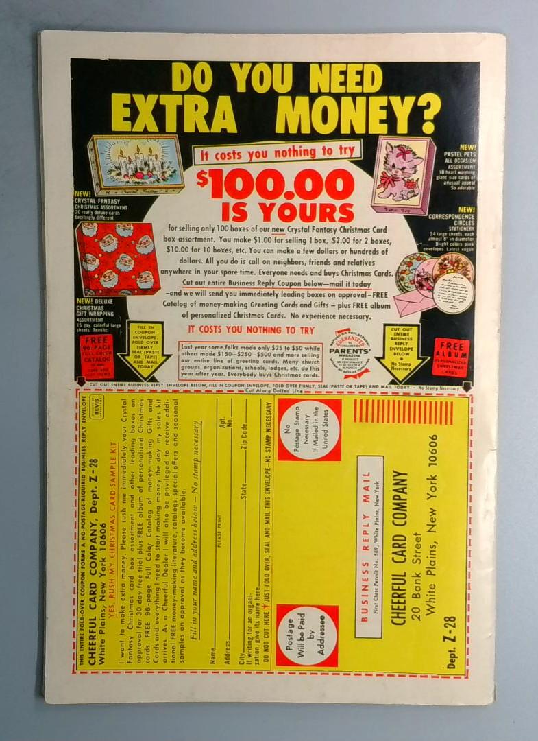 This issue presents "Millie's Red-Headed Rival" on the cover, showcasing the fashion-forward antics of Chili as she tries on outfits while her friend Reggie waits. The interior story, "The Lady and the Lipstick," illustrated by Stan Lee and other Marvel talents, follows Chili as she's selected to be the new Lily Lovely Lipstick Girl, leading to comedic situations and romantic entanglements. This Queen-Size Special format offered extra pages of entertainment, including advertising for mail-order opportunities to earn extra money selling greeting cards and Christmas card assortments.