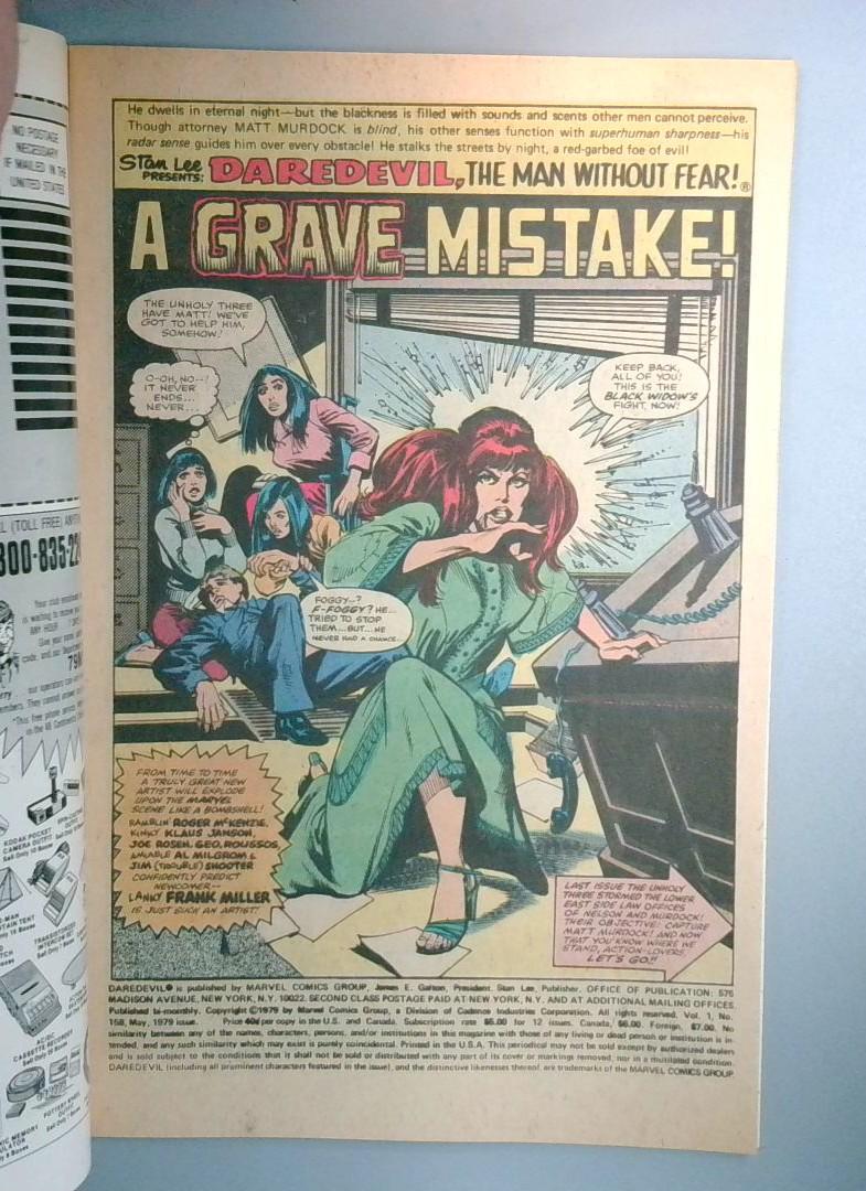 Daredevil #158 NM- First Issue of Daredevil by Artist Frank Miller Marvel 1979