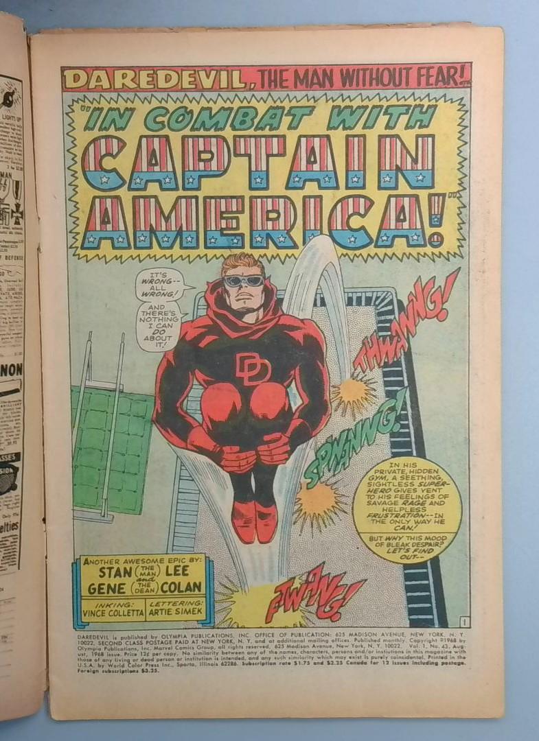 Daredevil #43 VG 1st Daredevil vs Captain America Fight Marvel 1968 LN1