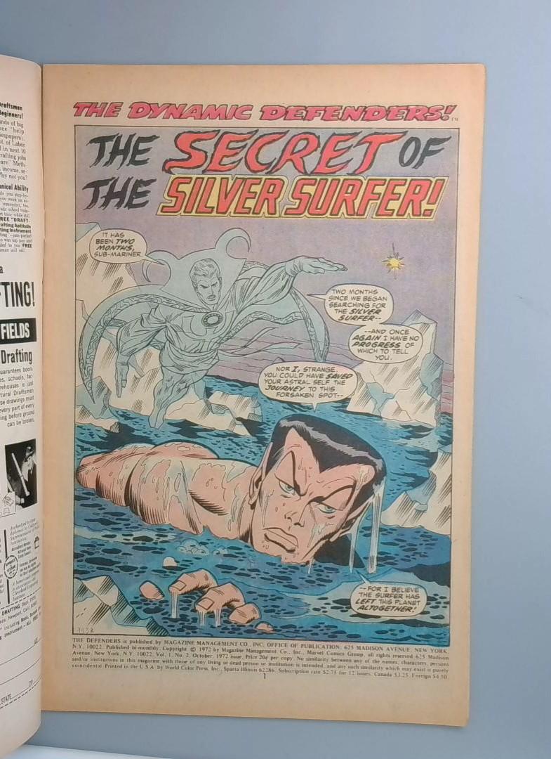 Keywords: Defenders Silver Surfer Marvel Comics comic book 1972 Hulk superheroes cosmic adventure action vintage comics