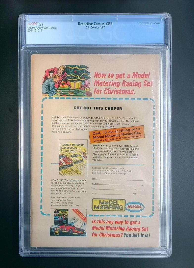 Detective Comics #359 features the groundbreaking debut of Batgirl (Barbara Gordon), introducing a new heroine to the Batman family. The cover dramatically highlights her first appearance, asking provocative questions about her heroic or villainous nature and her startling secret identity. This iconic issue marks a pivotal moment in DC Comics history, presenting a strong, dynamic female character who would become a crucial part of the Batman mythos. The "Million Dollar Debut" of Batgirl promises an exciting new chapter in superhero storytelling. CGC Universal Grade 3.5, displaying light wear consistent with the assigned grade.