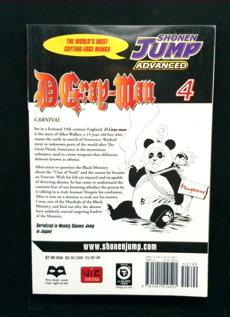 D.Gray-man Volume 4 - Published by Viz Media under the Shonen Jump Advanced imprint, this manga volume continues the supernatural adventure series by Katsura Hoshino.