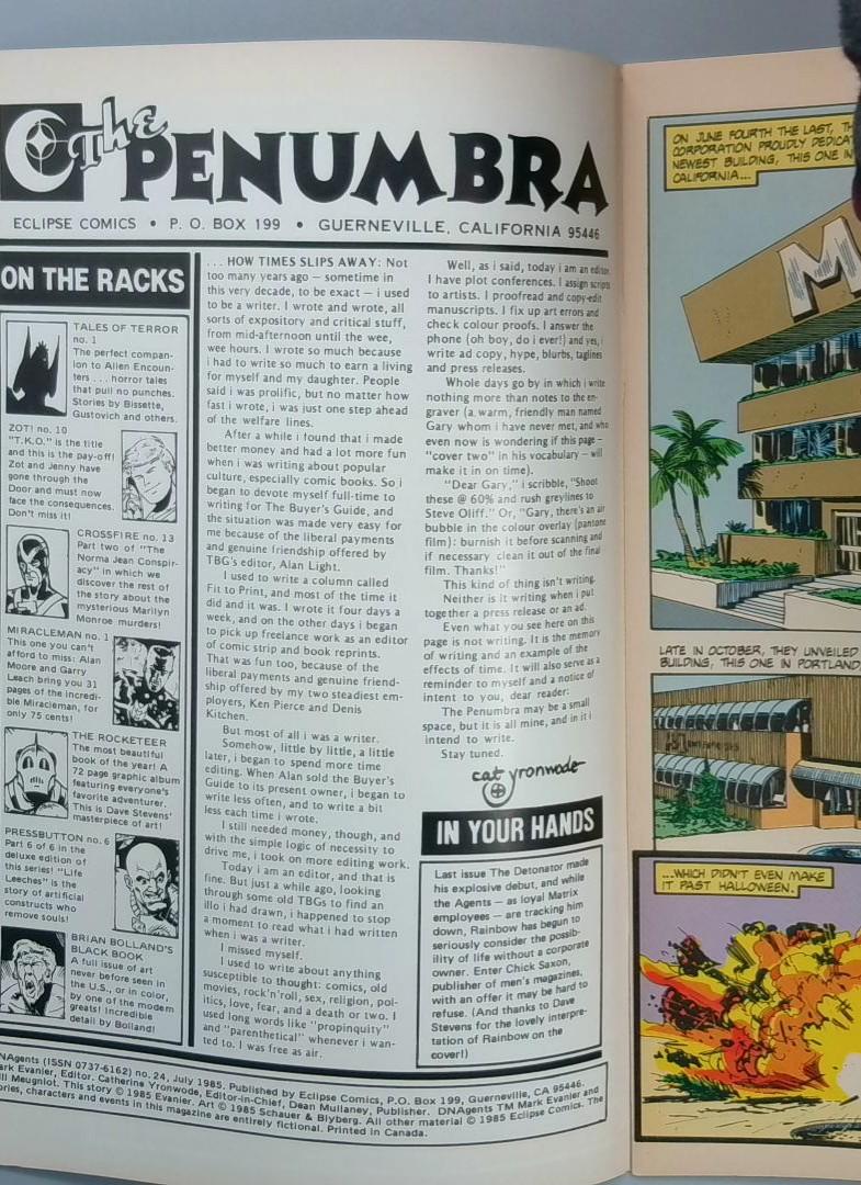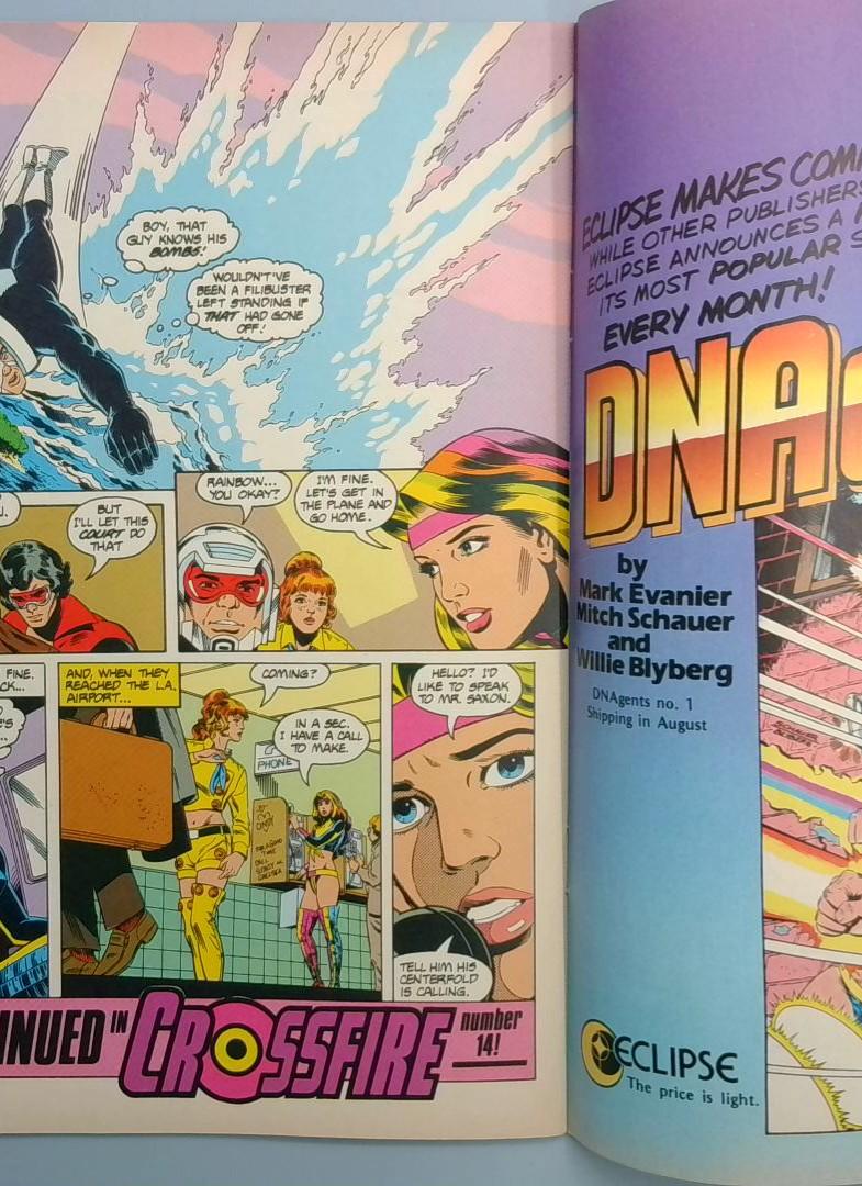 DNAgents #24 - Published by Eclipse Comics in 1985, featuring cover art by Dave Stevens. This issue is written by Mark Evanier with artwork by Mitch Schauer, Dan Spiegler, and Willie Blyberg.