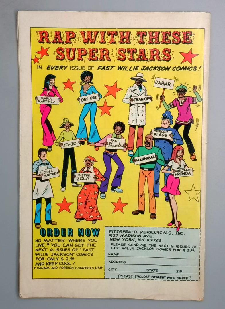 Keywords: Fast Willie Jackson comic book Fitzgerald Periodicals 1977 blaxploitation African American comics urban setting vibrant artwork culturally relevant subscription offer
