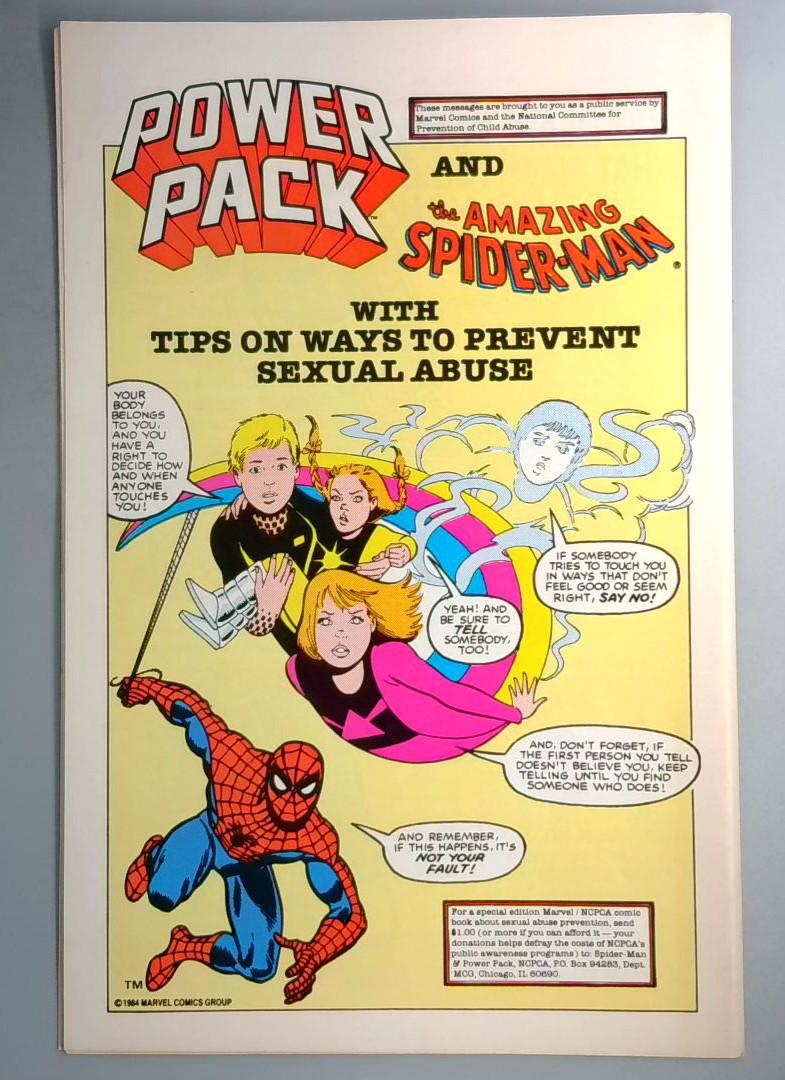 Power Pack and the Amazing Spider-Man: Tips on Ways to Prevent Sexual Abuse - Marvel Comics, 1984. A special public service comic created in collaboration with the National Commission for the Prevention of Child Abuse, featuring Spider-Man and the Power Pack team.
