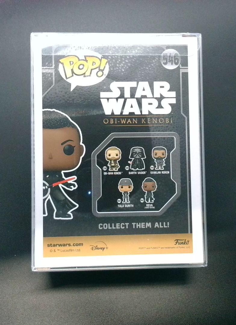 Funko Pop Star Wars #546 featuring Reva (Third Sister) in her dark robes with lightsaber, captured in an dynamic pose. Walmart exclusive figure with excellent collectibility. Box shows minor wear consistent with retail display but remains in good condition overall. Complete with original packaging and character details clearly visible.