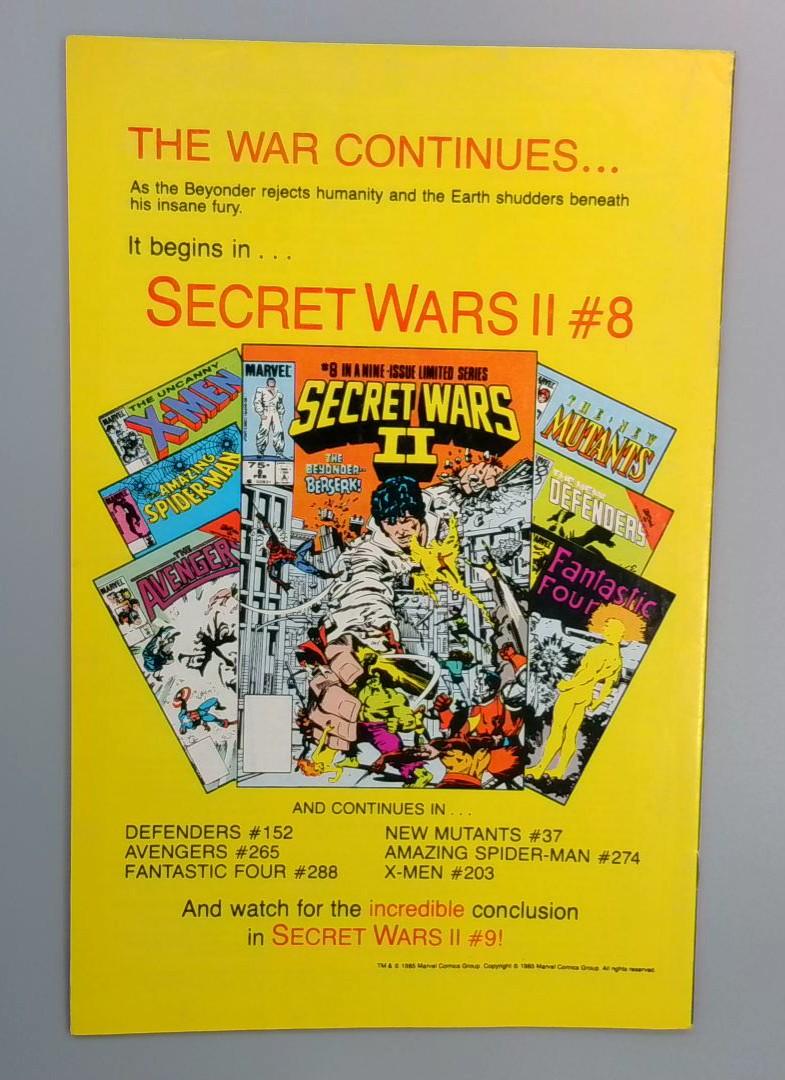 G.I. Joe: A Real American Hero #44 (Marvel) — action-packed issue featuring a dramatic motorcycle-versus-truck chase as the Joes square off against Cobra operatives. Continues the series’ military-adventure storyline with espionage, vehicle combat and high-stakes confrontations. Back cover includes a full-page ad for Secret Wars II #8 and related Marvel tie-ins.