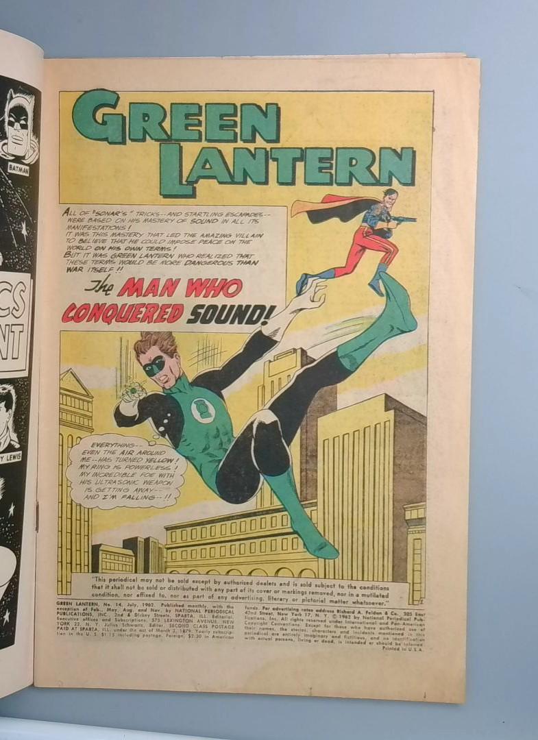 Keywords: Green Lantern DC Comics July 1962 Sonar superhero comic book sound powers villain urban landscape epic battles