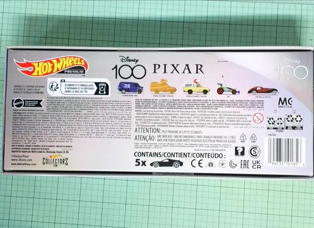 Keywords: Hot Wheels Disney Pixar collectible cars 100th anniversary Mattel premium set Monstertruck Van Pizza Planet Truck Cruella de Vil