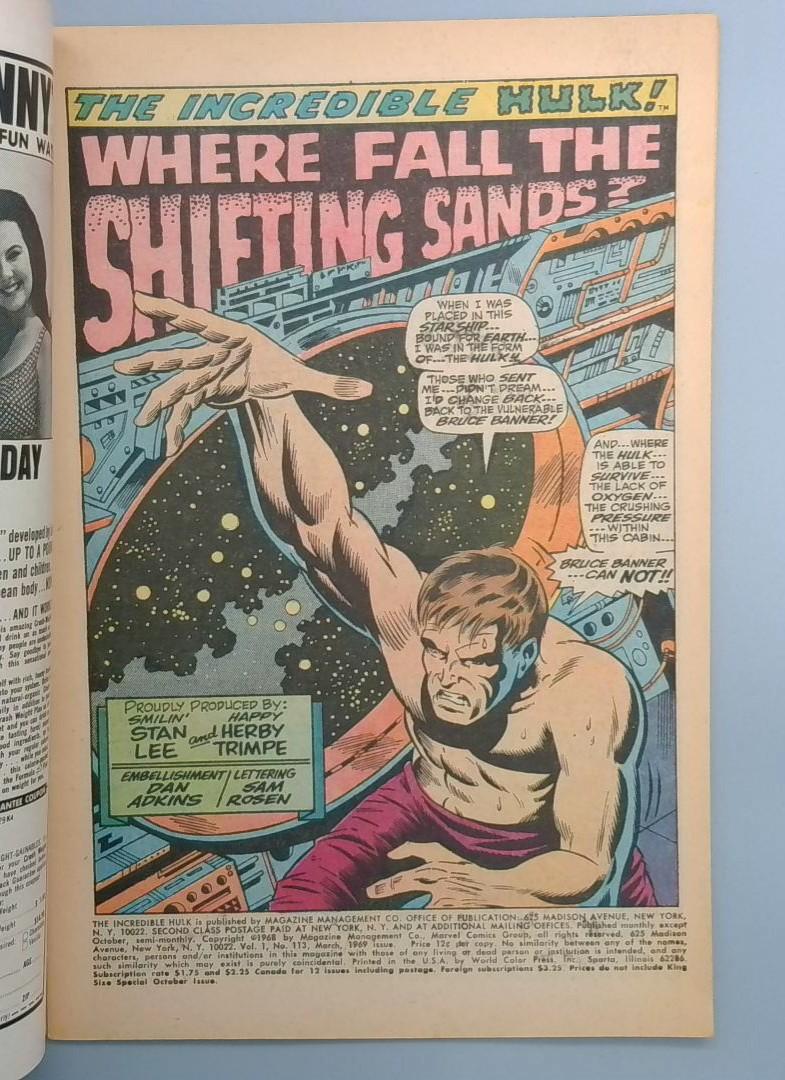 THE INCREDIBLE HULK #113 - A Silver issue from Marvel published March 1969.
