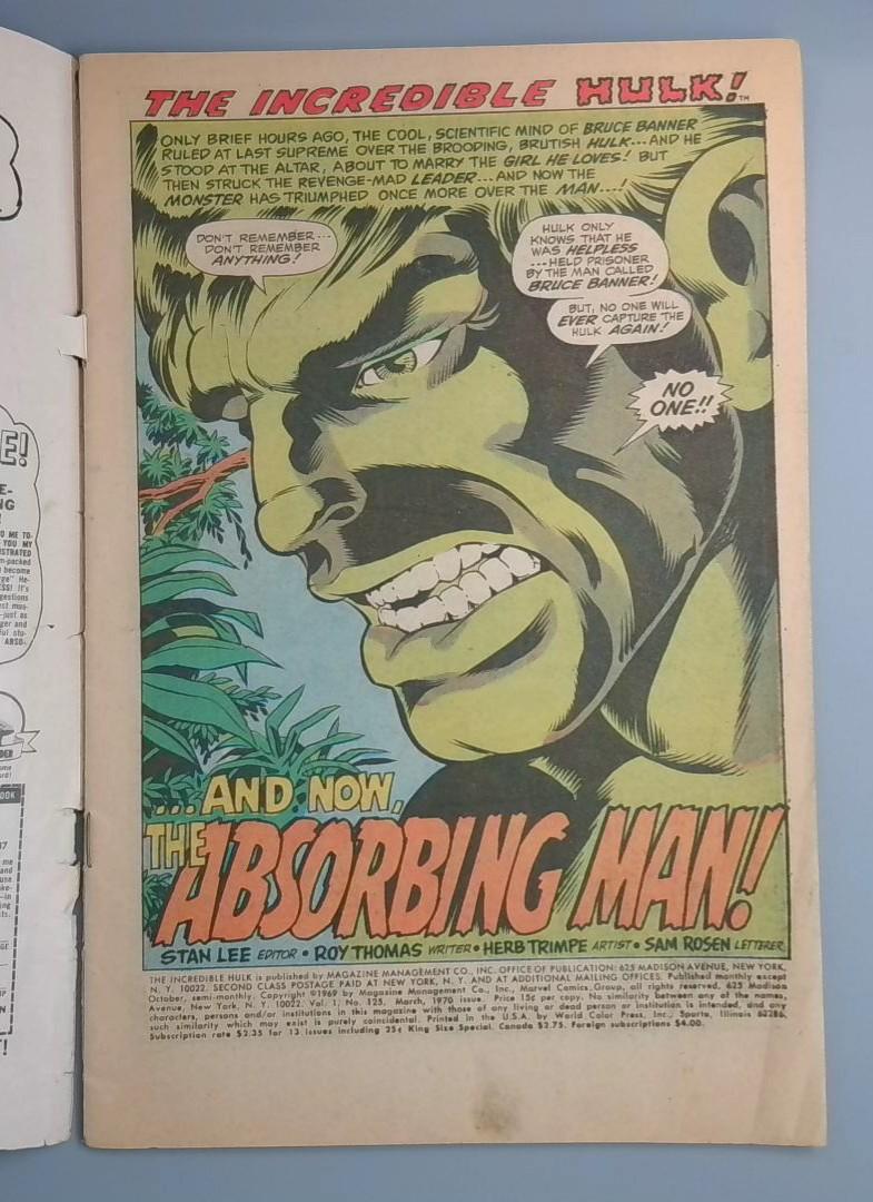 Keywords: Incredible Hulk Absorbing Man Marvel Comics vintage comics superhero battle 1970 comic comic book cover Hulk vs. villain cosmic showdown comic book collectors