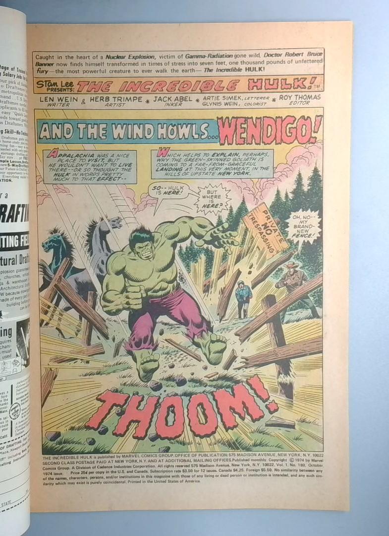 THE INCREDIBLE HULK #180 - A key Bronze issue from Marvel published October 1974.