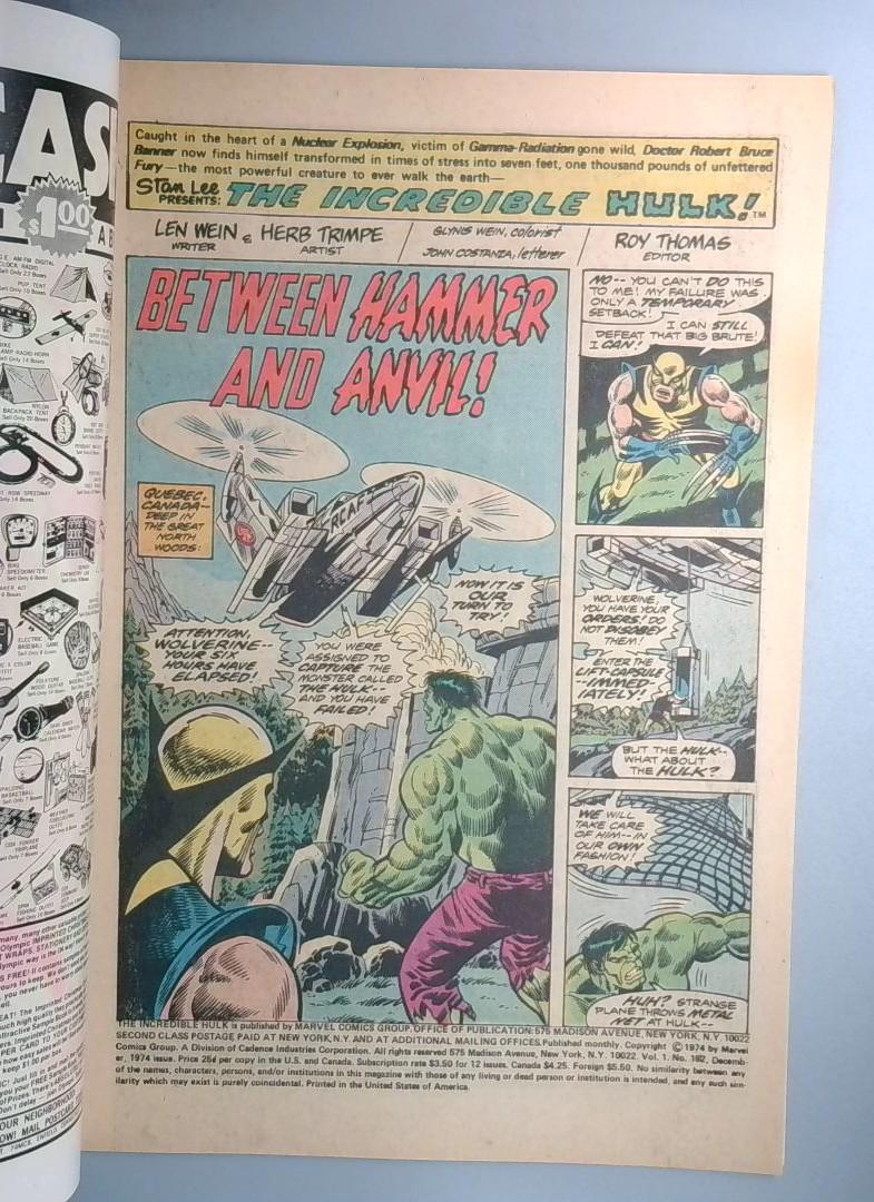 THE INCREDIBLE HULK #182 - A key Bronze issue from Marvel published December 1974.
