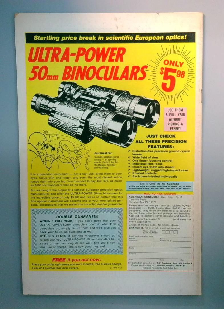 The issue also includes a full-page advertisement for Ultra-Power 50mm Binoculars, a classic example of the mail-order merchandise that appeared in comics of this era, offering precision European optics at the budget-friendly price of $5.98.