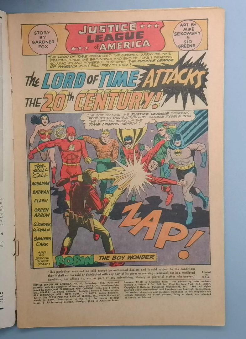 Justice League of America #50 Detached Bottom Staple DC 1966