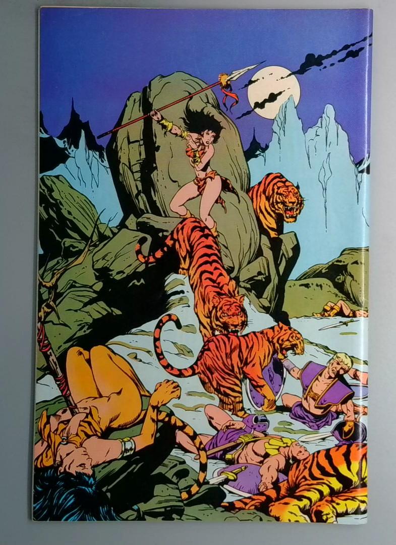 This issue showcases Kull facing off against ferocious tiger creatures in a treacherous ice cavern, with his signature red and gold armor and weapons on full display. The dynamic cover art by Dusko captures the brutal action and exotic settings that define this fantasy epic, as Kull battles multiple enemies in a perilous landscape.