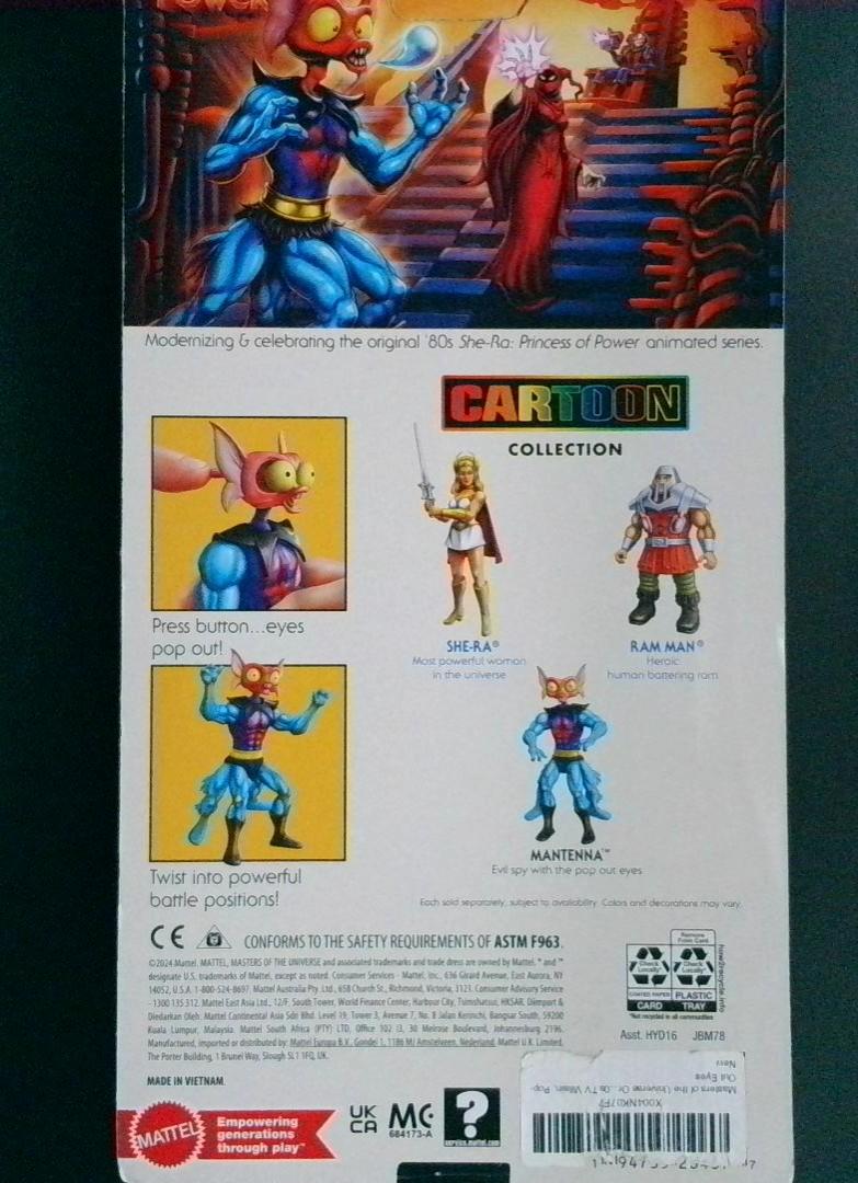 Keywords: Mantenna Masters of the Universe Mattel cartoon collection action figure collectible sealed packaging pop-out eyes vintage toy He-Man