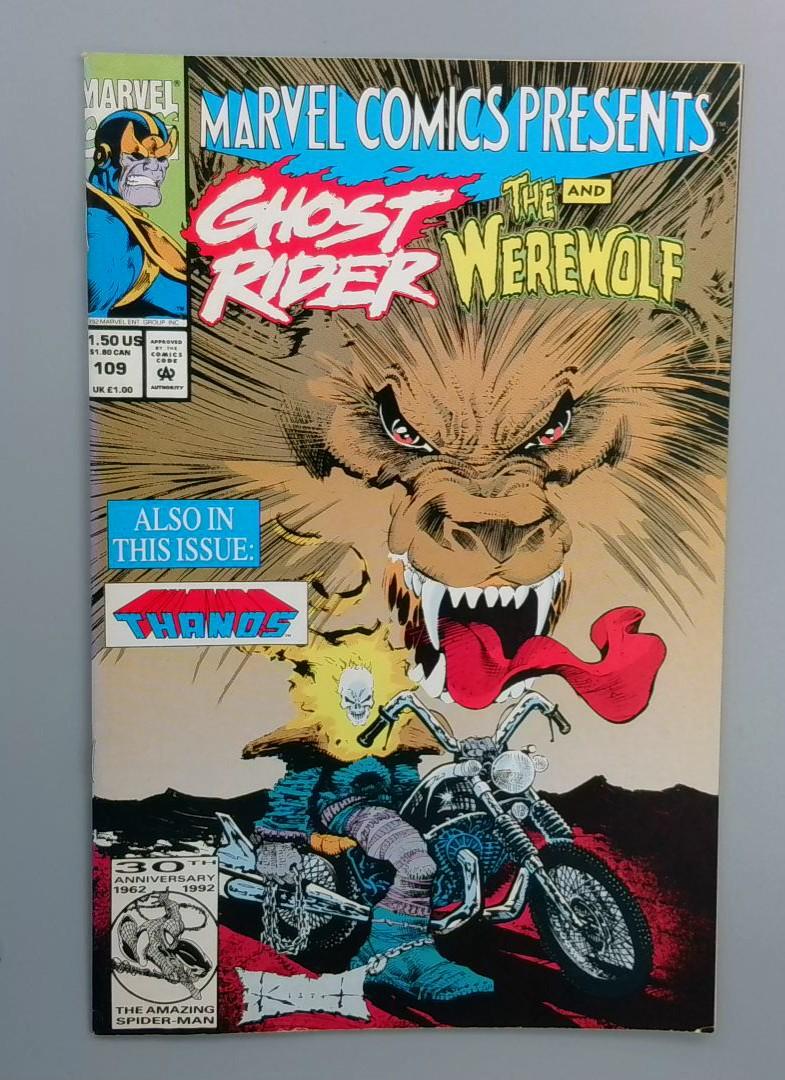 Wolverine headline story "Typhoid's Kiss" pits Logan against the mysterious Typhoid in a dark, character-driven chapter of the Marvel Comics Presents anthology. The issue also contains multiple backup features, including Ghost Rider & the Werewolf, a Young Gods segment, and a Thanos backup, giving readers a variety of short-form tales. Notable for its bold, high-contrast covers — a dripping lipstick motif over Wolverine's claws on one side and a striking Ghost Rider/werewolf image on the other — this issue is a standout anthology entry.