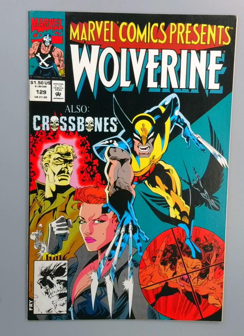 Marvel Comics Presents #129 — anthology issue pairing a Ghost Rider tale involving Typhoid Mary with a Wolverine backup featuring Crossbones, plus an additional Iron Fist segment. Blends supernatural horror and vengeance in the Ghost Rider story with gritty, action-packed Wolverine scenes. Part of the long-running anthology format that delivers multiple short-form character-focused stories in a single issue.