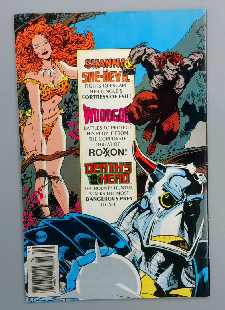 Marvel Comics Presents #76 features a powerful Weapon X storyline, showcasing a dramatic and intense red-toned cover depicting a fierce, monstrous character. The issue is part of the Weapon X saga, which explores the dark origins and experimental program behind a key Marvel character's transformation. This comic is notable for its striking artistic style and the gritty, visceral portrayal of the character's brutal experiences. The second image is a separate comic featuring characters Shanna the She-Devil, Woodgod, and Death's Head, highlighting different Marvel characters and their individual storylines involving jungle adventures, corporate threats, and bounty hunting.