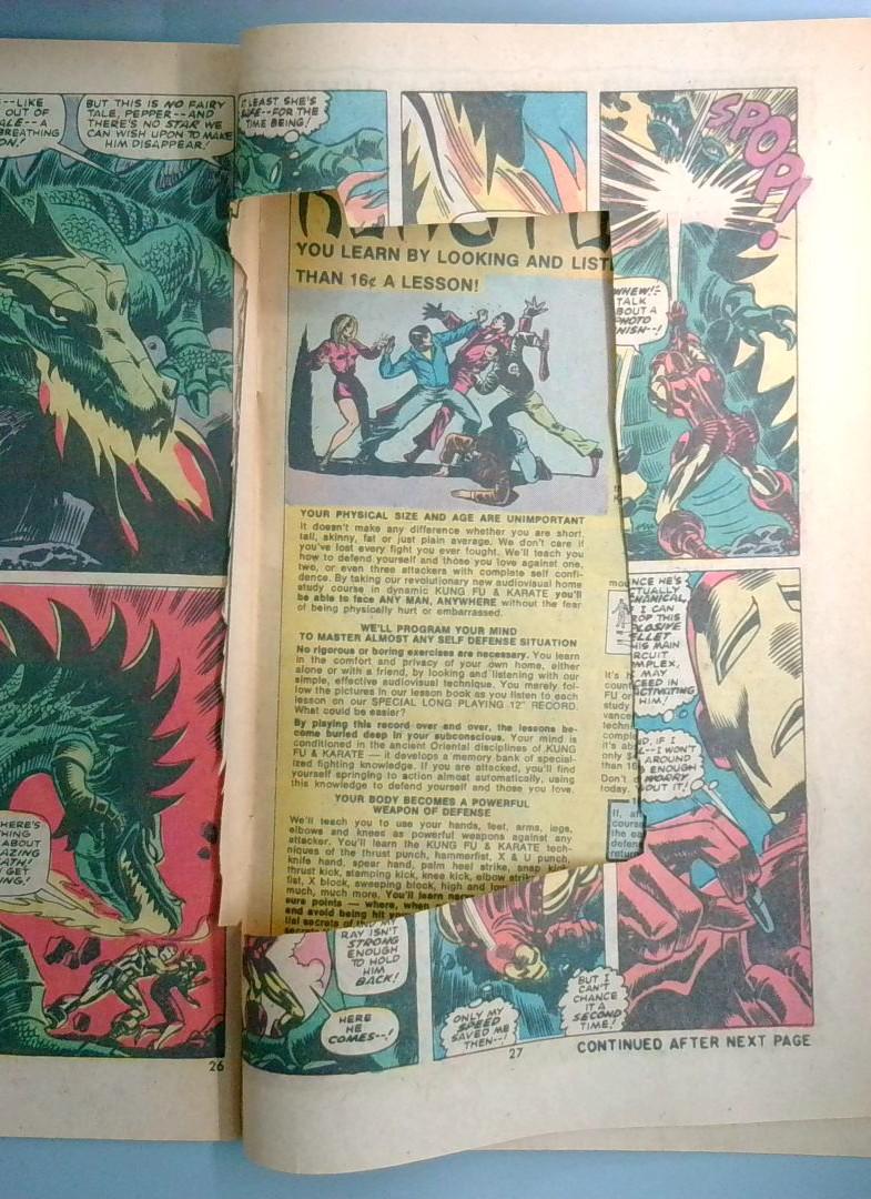 Interior pages display the original artwork and story content, with vibrant Golden Age coloring and classic Marvel-style action sequences. This 25-cent cover price issue represents the affordability and accessibility of Marvel Comics during the 1970s.