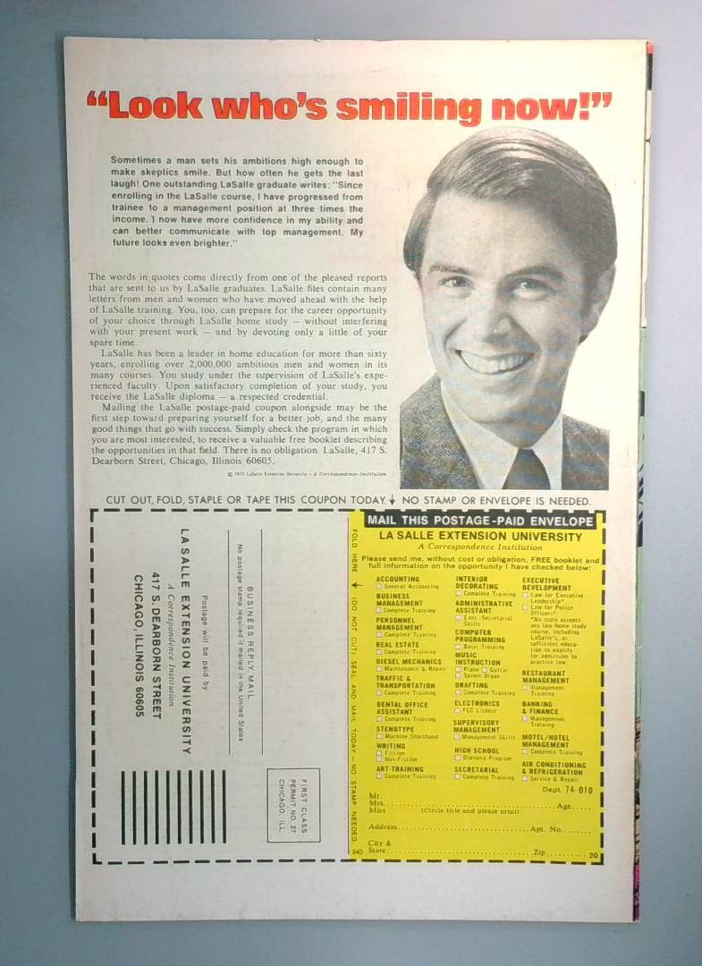 The back cover includes a LaSalle Extension University advertisement with a vintage mail-in coupon, a common educational insert in comics of this era. This is a raw, unslabbed copy of the original publication.