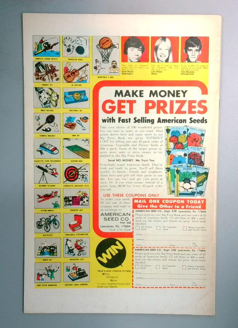 The back cover includes vintage advertisements typical of the era, including a "Make Money Get Prizes with Fast Selling American Seeds" promotion from American Seed Co., reflecting authentic period marketing.