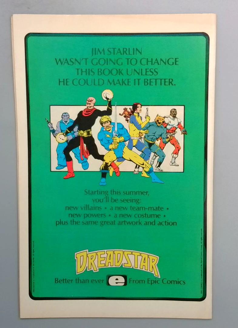 This issue kicks off a new era for the Micronauts with fresh adventures across the cosmos. The vibrant cover showcases the team of heroes alongside their spacecraft and enemies, promising action-packed storytelling in a cosmic setting. Jim Starlin's involvement, as noted in the back cover advertisement, ensures quality artwork and storytelling as he guides the direction of this relaunched series with new villains, new team members, and new powers alongside the signature great artwork the series is known for.