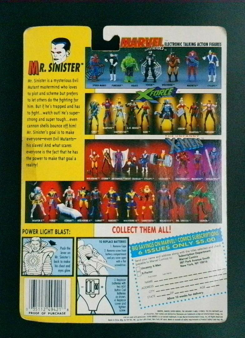 Keywords: Mr. Sinister Uncanny X-Men Toy Biz action figure Marvel collectible toy 1992 light-up chest original packaging superhero
