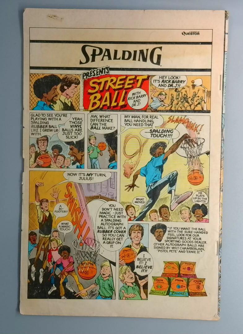 This issue presents an action-packed confrontation between Nova and Spider-Man, with the dramatic cover promising their face-to-face battle. The story also teases Marvel's two greatest heroes coming together against the power of Photon. The included backup feature showcases a Spalding street ball advertisement, promoting Rick Barry and Dr. J's signature basketball gear with classic 1970s charm and authenticity.