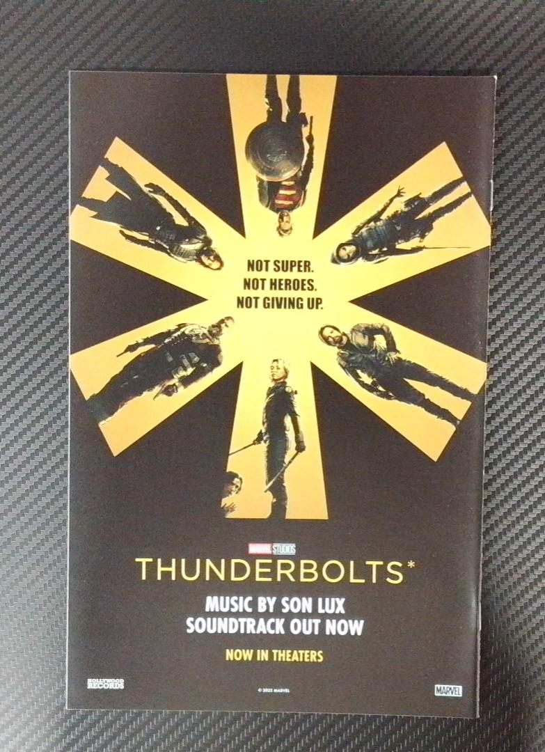 This listing also includes a promotional insert for Thunderbolts, advertising the film's theatrical release with a "Not Super. Not Heroes. Not Giving Up." tagline and featuring music by Son Lux, indicating this was a contemporary tie-in during the film's marketing campaign.