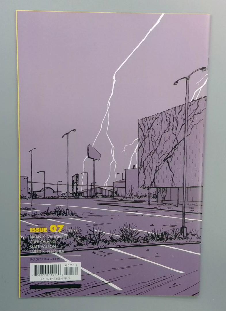 Paper Girls #7 — Brian K. Vaughan and Cliff Chiang continue the time-traveling, coming-of-age mystery about four 12-year-old paper delivery girls who find themselves caught between past and future timelines. Striking purple-and-yellow cover art and interior visuals by Cliff Chiang with colors by Matt Wilson highlight the moody, eerie atmosphere as the series' central mystery and character conflicts deepen. Image Comics release; issue advances key plot threads in Vaughan's acclaimed run.