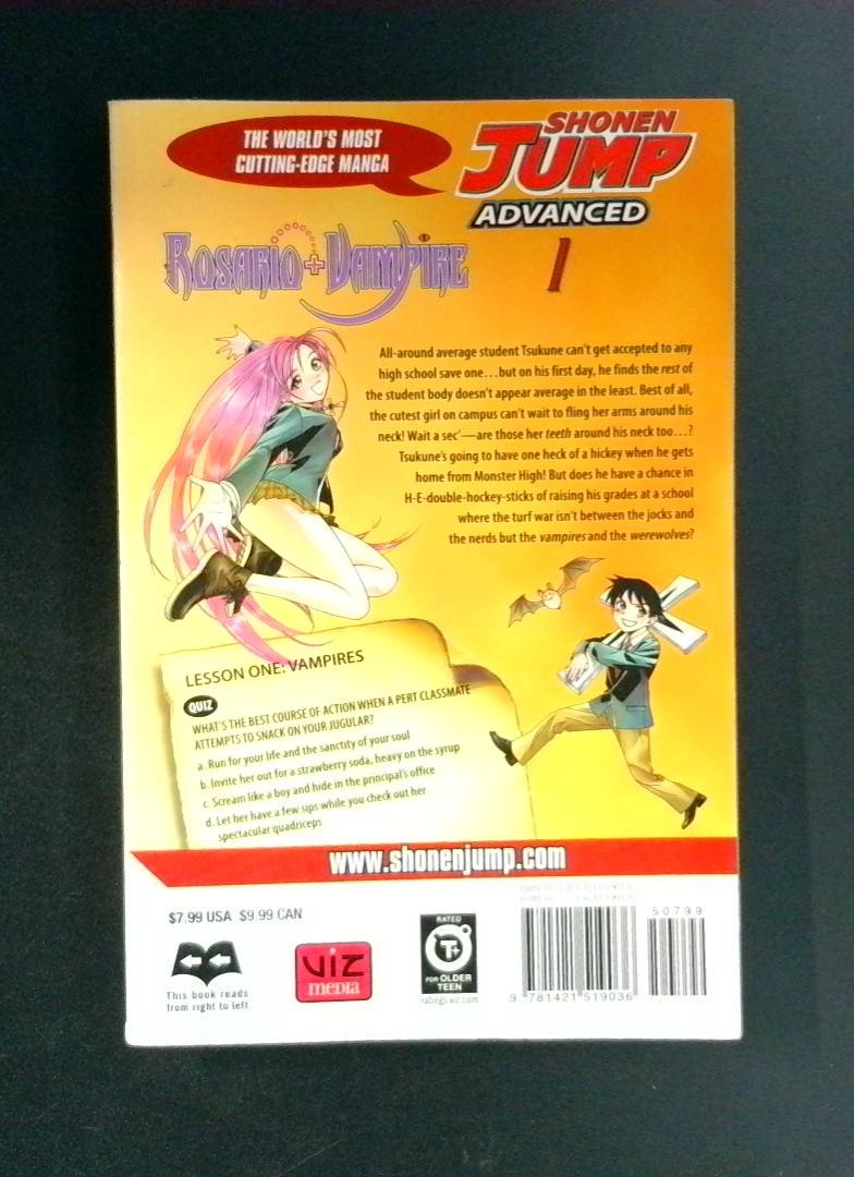 Rosario + Vampire Volume 1 - Published by Viz Media under the Shonen Jump Advanced imprint, this manga series is created by story and art by Akihisa Ikeda.