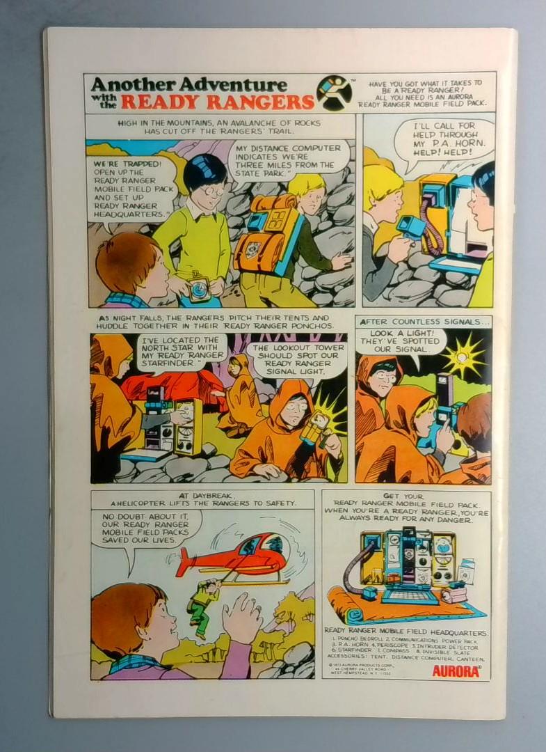 Inside, readers will find an additional adventure with the Ready Rangers, a youth-oriented feature highlighting outdoor survival and preparedness through the Ready Ranger Mobile Field Pack, an Aurora product tie-in. This issue captures the spirit of 1970s DC superhero comics with their blend of action, humor, and commercial tie-ins.