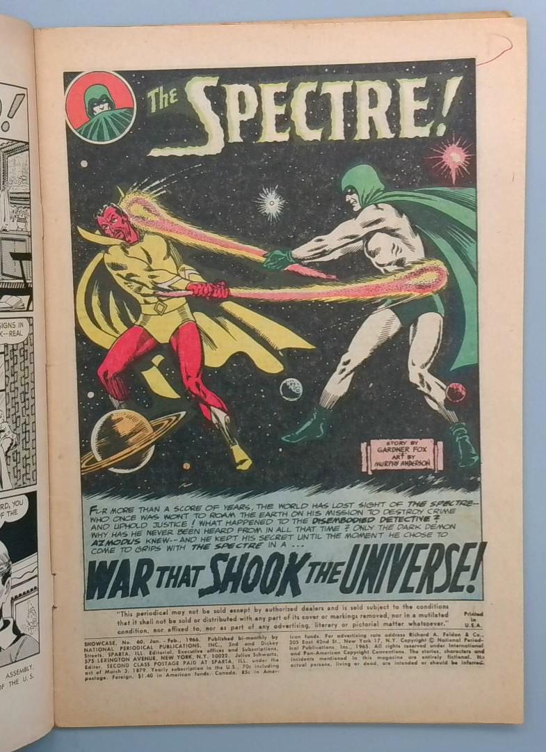 Keywords: The Spectre Showcase #60 DC Comics February 1966 comic book supernatural powers cosmic battle graphic novel vintage comics ghostly guardian dramatic storytelling