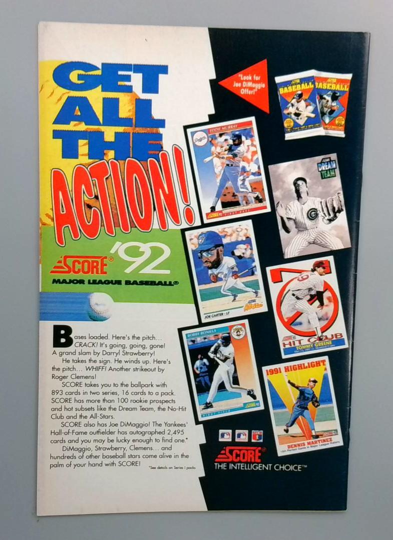 Sleepwalker #11 (Marvel Comics, Apr) finds Sleepwalker caught in a supernatural collision with Ghost Rider as the two confront a flaming menace threatening both the human mind and the spirit world. Guest-starring Ghost Rider, the issue delivers a high-energy, occult-heavy team-up with a striking fire-and-motorcycle cover. Back cover features a 1992 Score baseball-card advertisement.