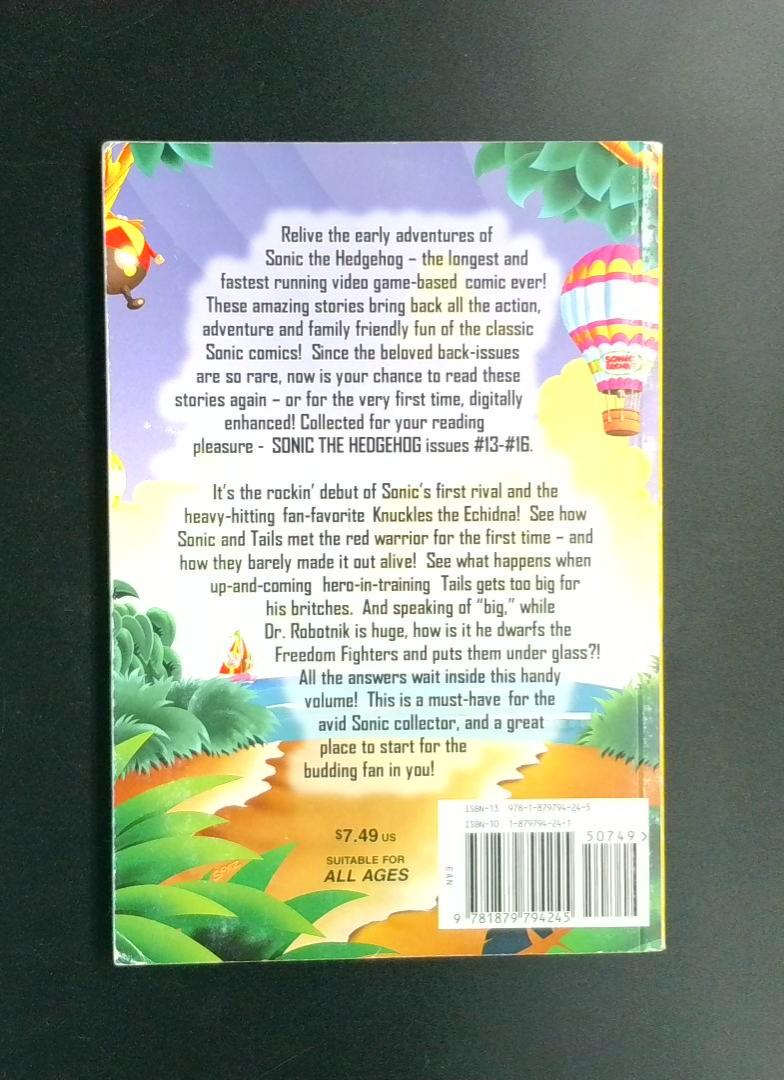 This volume relives the early adventures of Sonic the Hedgehog, the longest and fastest running video game-based comic ever! These amazing stories bring back all the action, adventure, and family friendly fun of the classic Sonic comics. Featuring the rockin' debut of Sonic's first rival and the heavy-hitting fan-favorite Knuckles the Echidna, this collection showcases how Sonic and Tails first met the red warrior—and how they barely made it out alive! Discover what happens when up-and-coming hero-in-training Tails gets too big for his britches, and uncover the mystery of Dr. Robotnik's enormous size as he dwarfs the Freedom Fighters and puts them under glass. Collects Sonic the Hedgehog issues #13-#16, this is a must-have for avid Sonic collectors and a great place to start for the budding fan.