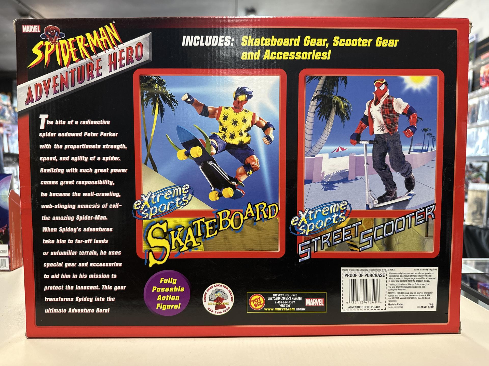 Keywords: Spider-Man action figure Toy Biz Marvel poseable figure superhero toy extreme sports skateboard scooter collectible