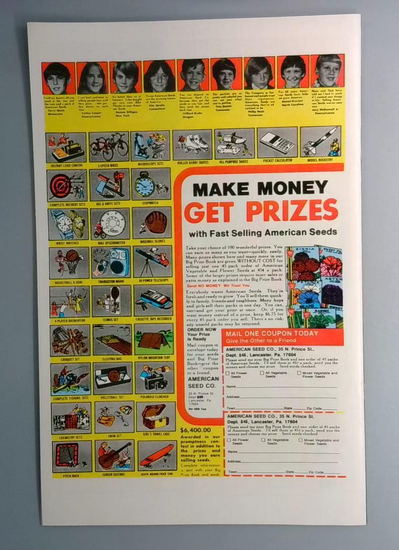 THE SPIDER-WOMAN #1 - Marvel Comics Group, 1978. The 1st Spectacular Issue of this super-heroine sensation. This landmark debut features the origin story of Spider-Woman with the tagline "To Know Her Is to Fear Her!" The cover showcases the character in her iconic red and yellow costume, leaping into action against a full moon backdrop while facing armed adversaries. This is the first appearance of Spider-Woman in her own series, establishing her as a major Marvel Comics character with the promise that "The Super-Heroine Sensation They Said Couldn't Be Done!" The back cover includes a vintage American Seeds mail-order advertisement, typical of comics from this era, offering prizes and merchandise for young readers.