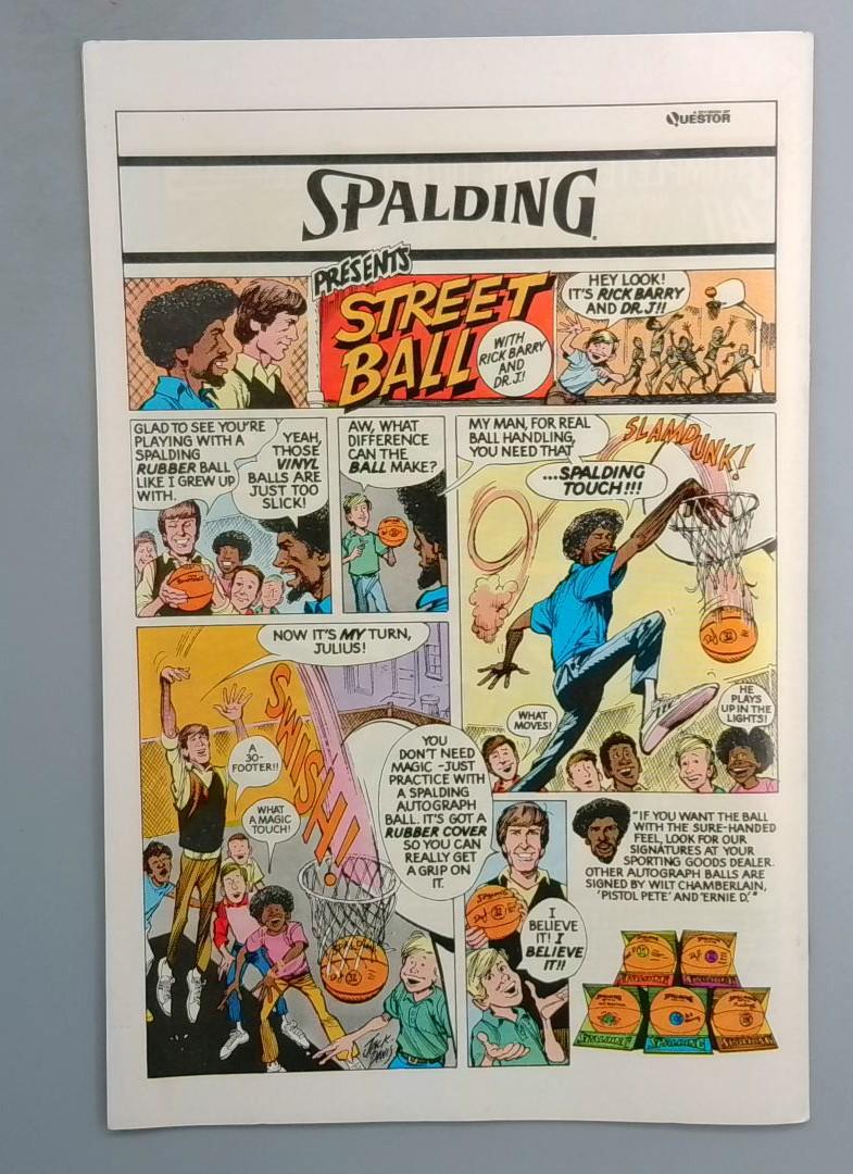 The interior includes a bonus Spalding sports advertisement featuring "Street Ball," a vintage basketball-themed promotional comic that provides a nostalgic snapshot of 1970s advertising in Marvel publications.
