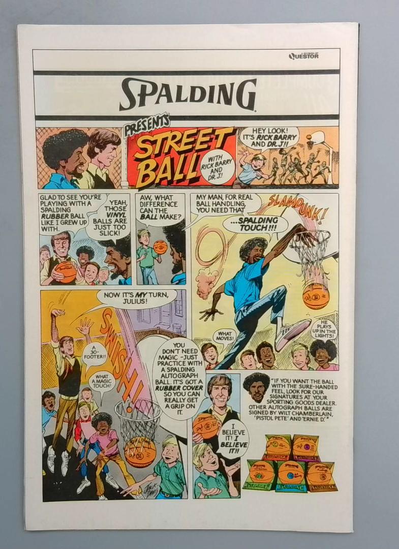 The interior pages include a Spalding Street Ball advertisement featuring basketball action and celebrity endorsements, adding to the period charm of this 1970s publication.